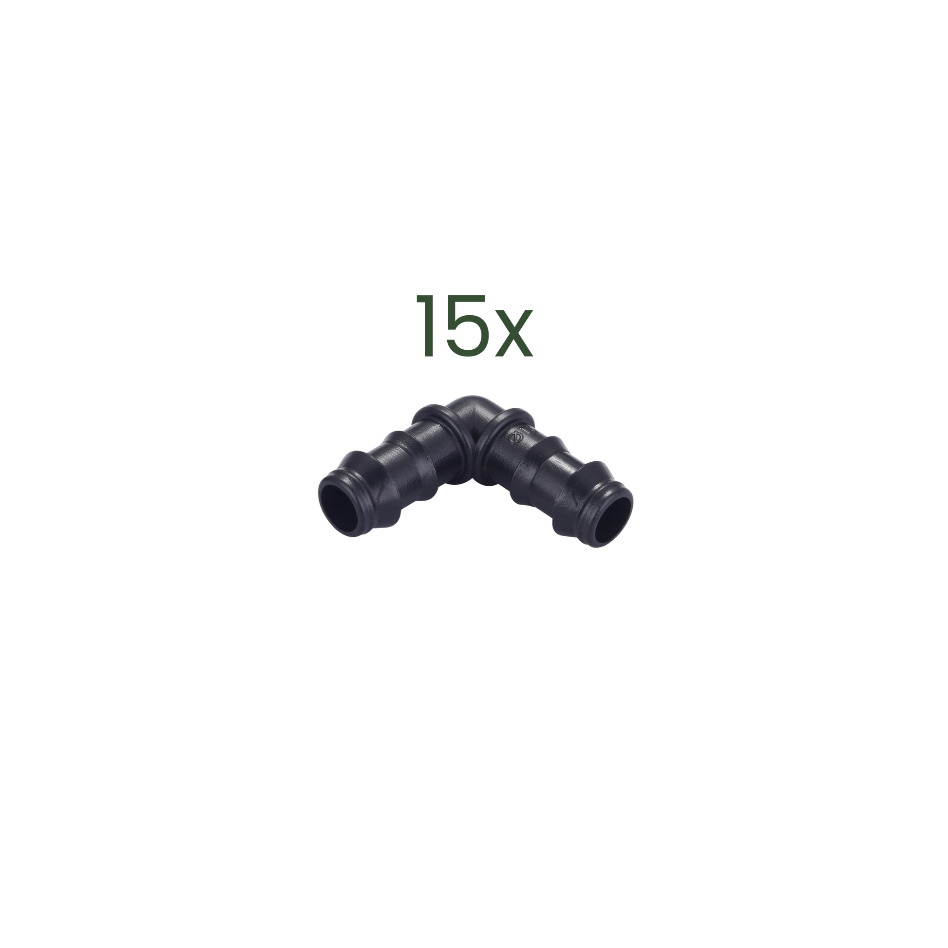 Turn corners smoothly. Includes 15 elbow connectors — perfectly sized for 16mm irrigation tubes.