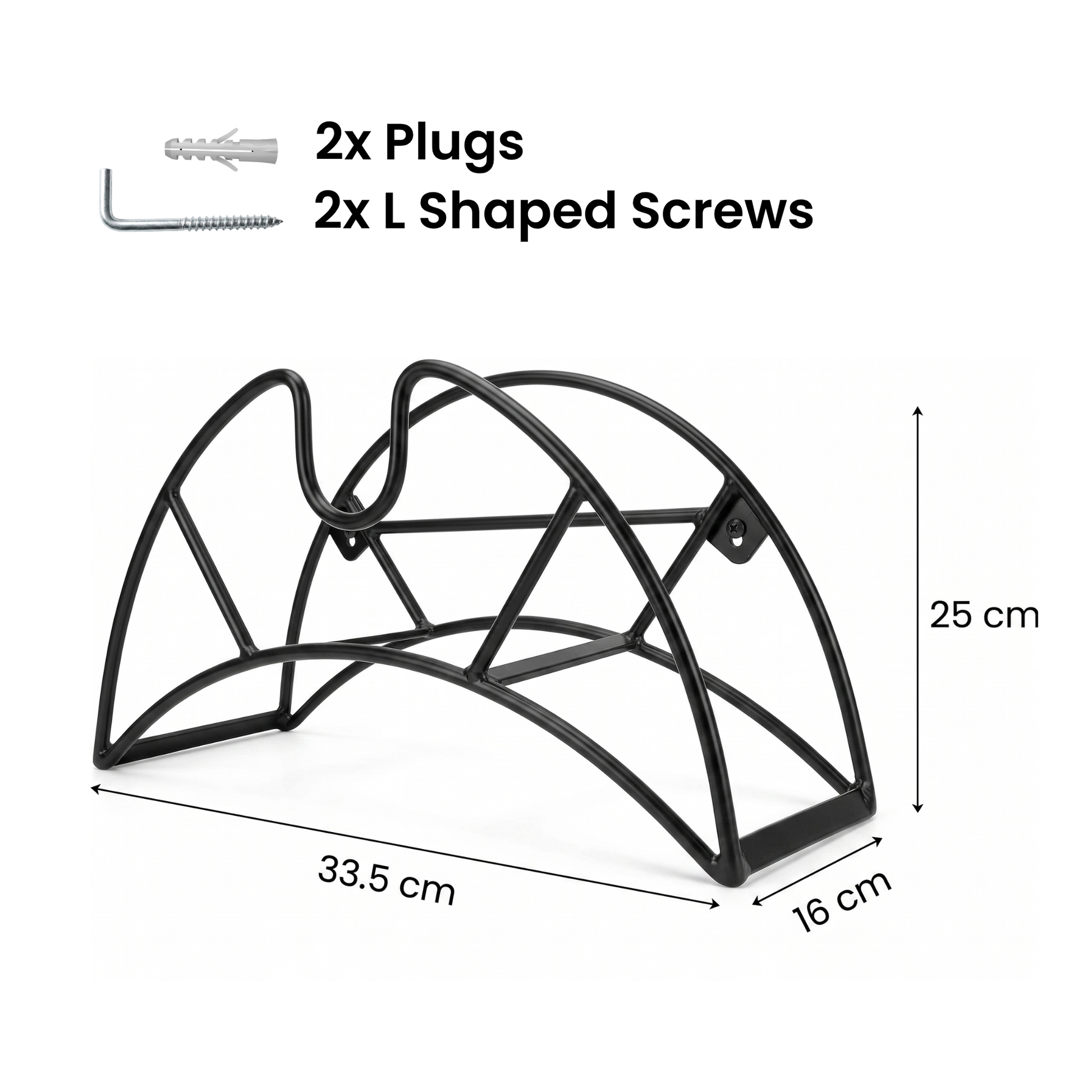 This Garden Hose Wall Mount Holder offers an elegant yet sturdy way to store your hose. Made of iron, this wall mount holder provides a secure and reliable fixture for your hose, ensuring it stays where you want it. It's the perfect addition to any home/garden, with a decent look.