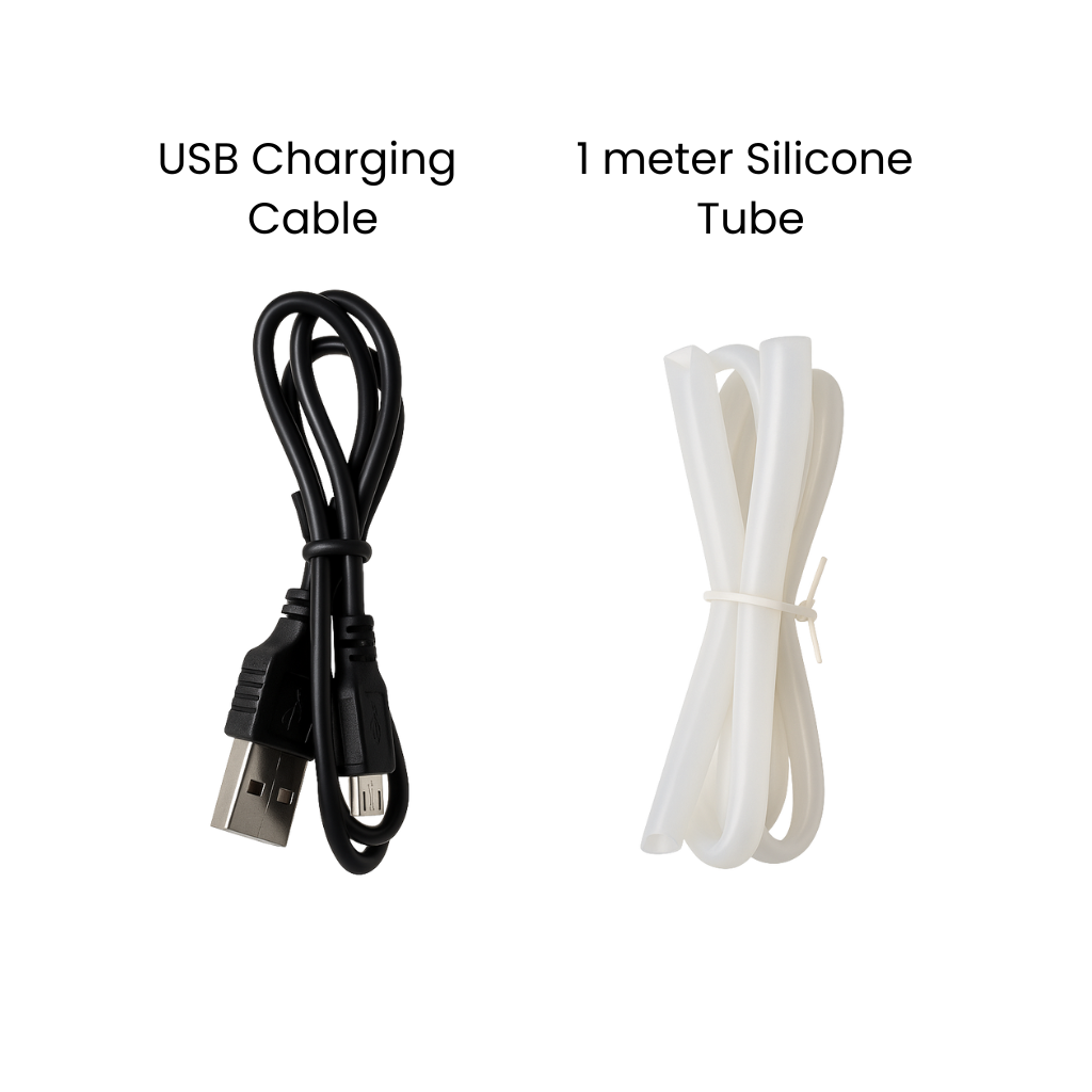 Pump System: Comes with a high-performance, USB-rechargeable Dual-Motor Pump and an extended 1-meter silicone hose.