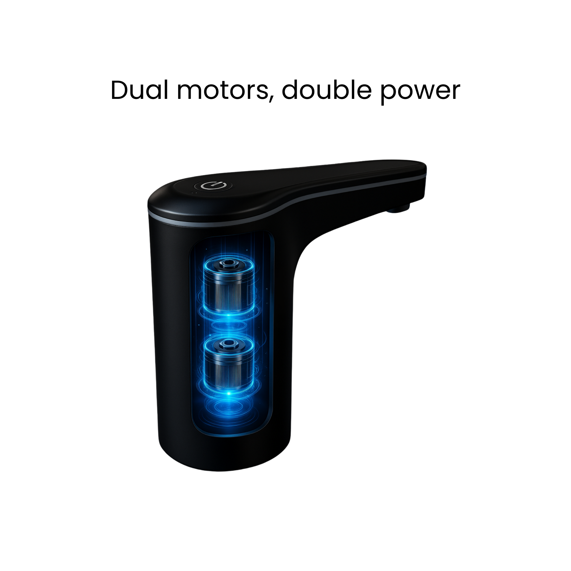 Pump System: Includes a powerful, USB-rechargeable Dual-Motor Pump and a 1-meter silicone hose to reach the bottom of the bottle.