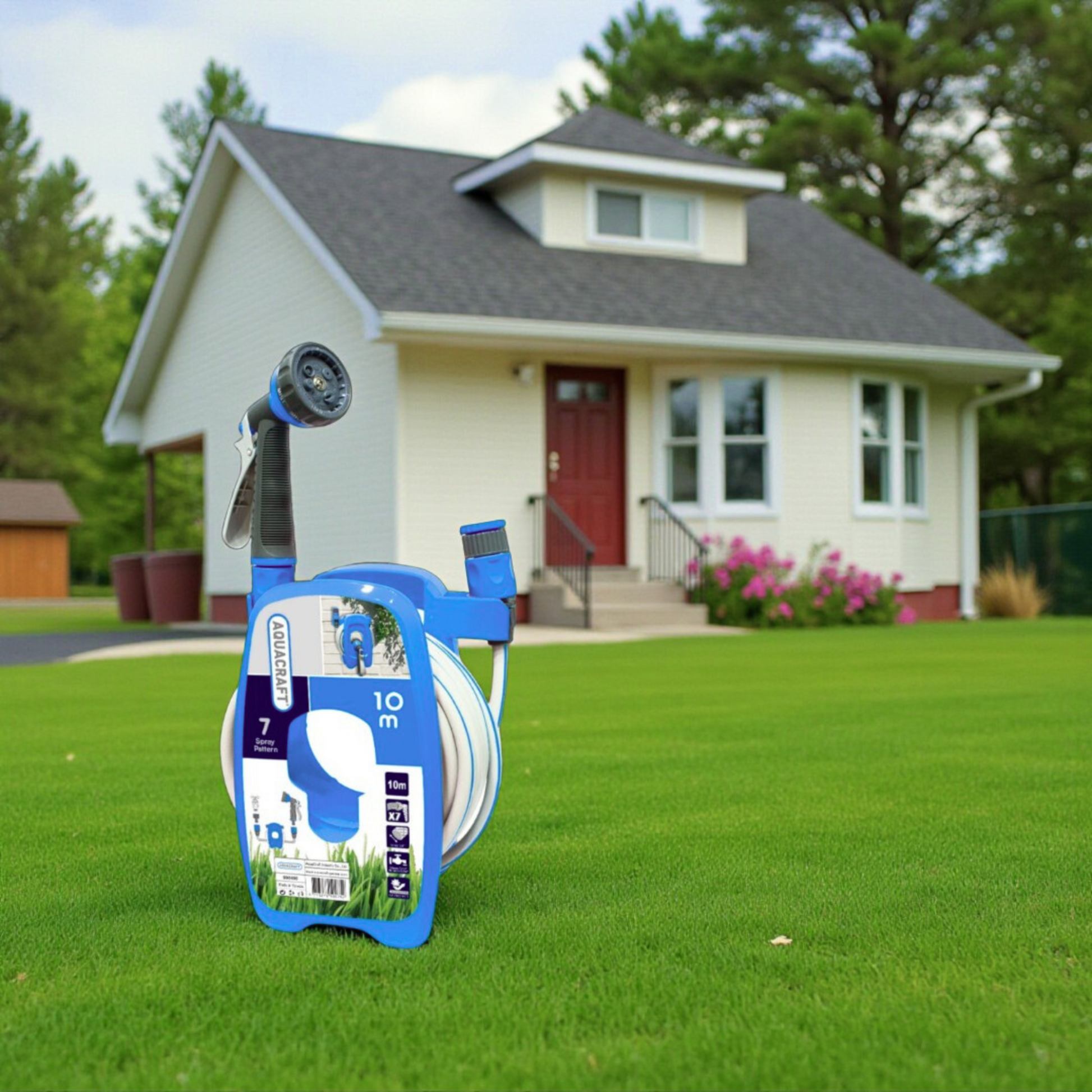 Simplify your watering with the Aquacraft Wall-Mount & Portable Hose Reel (10m) — a compact, versatile reel that can be mounted on a wall or used as a portable unit for quick garden work.